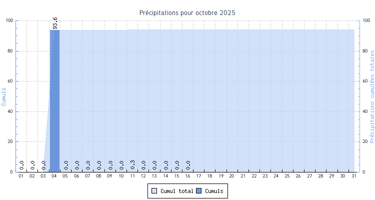 | 05 | 12.1 °C à 06:46 | 19.4 °C à 12:40 | 16.0 °C | 12.8 km/h (42.8 km/h) | 306 |